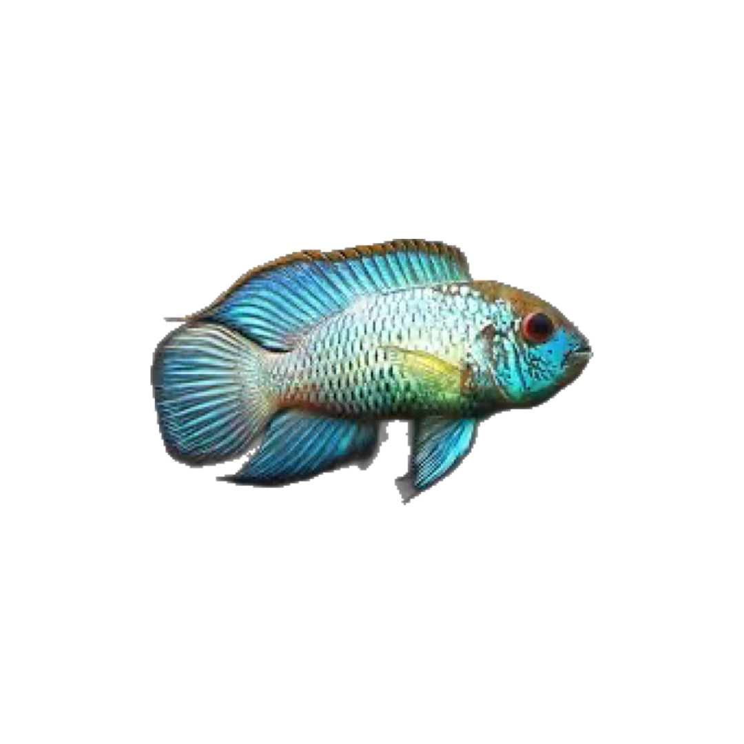 Color eléctrico, carácter equilibrado. Este cíclido destaca por su azul metálico y por ser más pacífico que otros de su familia. Perfecto para acuarios de tamaño medio con compañeros compatibles. Inteligente, curioso y siempre activo.