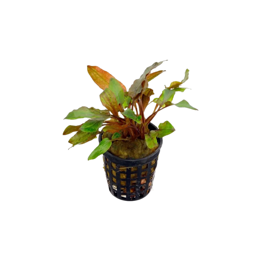Planta de hojas finas y alargadas con tonos rojizos y verdes oscuros. Muy decorativa, ideal para acuarios plantados de estilo natural. Tolera poca luz y es perfecta para zonas medias del acuario. Se adapta bien al sustrato nutritivo y requiere muy poco mantenimiento una vez establecida.