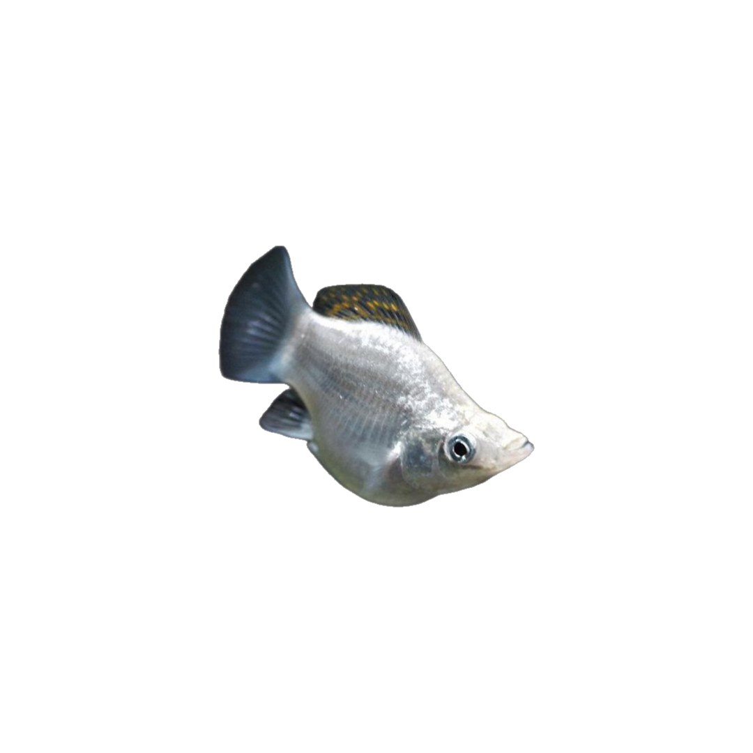Con su forma redondeada y su color blanco puro, este molly parece una burbuja viva en el acuario. Es perfecto para iluminar zonas oscuras y para aportar movimiento constante. Muy pacífico, se adapta bien y no tiene exigencias especiales.