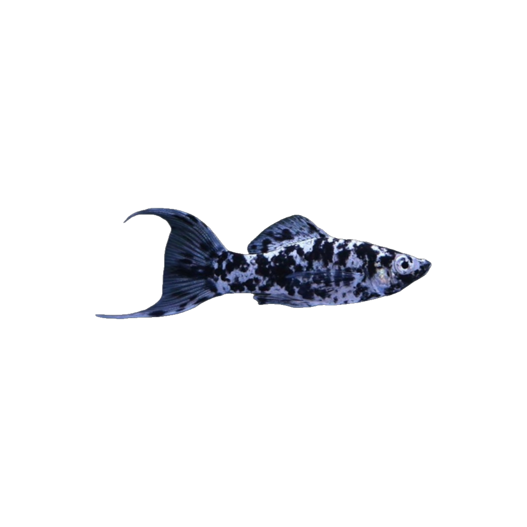 Una mezcla perfecta entre lo exótico y lo simpático. Esta variedad dálmata presenta un patrón de manchas negras sobre fondo blanco que llama la atención desde el primer momento. A eso le sumas su cola en forma de lira y tienes un pez con carácter propio. Requiere cuidados básicos y es muy sociable. Ideal para acuarios coloridos y activos.