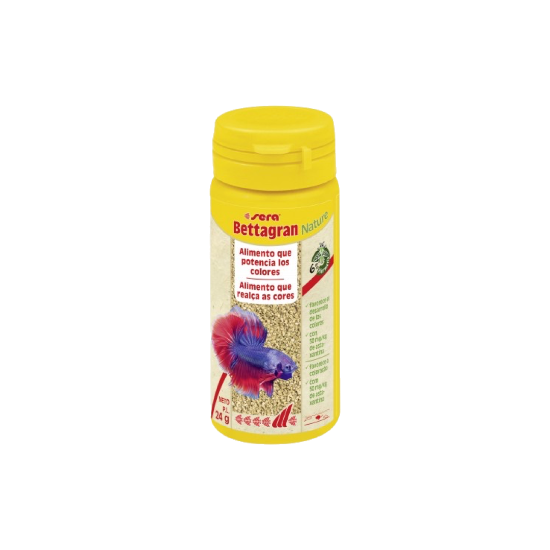 Alimento específico para peces betta. El tamaño y la textura de su granulado se ajusta perfectamente a su boca y forma de comer, lo que reduce el riesgo de obstrucciones y mejora la absorción de nutrientes. Contiene ingredientes naturales y proteínas animales de calidad, además de un toque de ajo natural que potencia su sistema inmune. Si tienes bettas, este granulado es esencial.