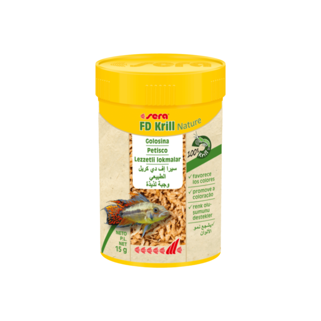 Snack natural de krill puro, rico en proteínas y ácidos grasos esenciales para realzar los colores de tus peces. Ideal como premio o complemento nutricional. Aumenta la vitalidad y el apetito de tus peces de forma natural.
