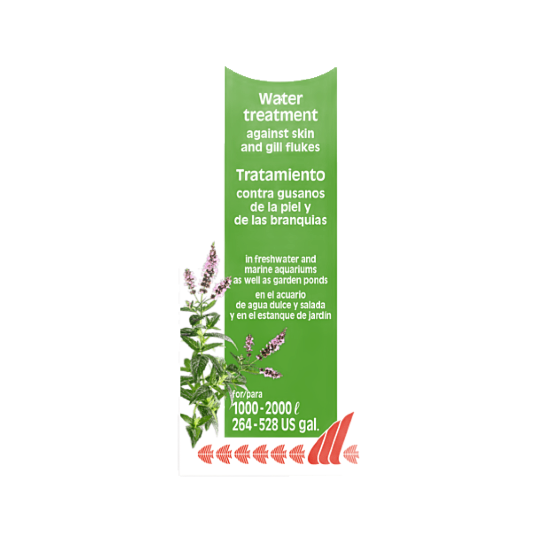 Tratamiento herbal eficaz contra trematodos y otros parásitos externos. Seguro para peces ornamentales. Fórmula natural sin antibióticos.