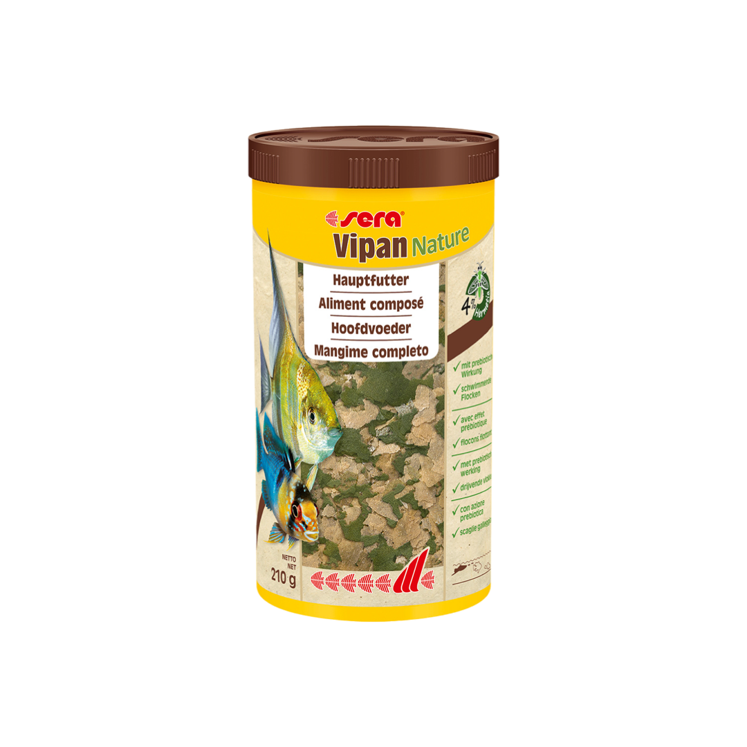 El alimento completo por excelencia para peces ornamentales. Sera Vipan Nature está formulado con ingredientes naturales sin colorantes ni conservantes artificiales, lo que garantiza una nutrición sana y equilibrada para peces tropicales de todo tipo. Su formato en escamas o granulado mantiene su forma y no enturbia el agua. Disponible en diferentes formatos (100ml, 250ml, 1L y 2Kg) para adaptarse tanto a acuarios domésticos como a instalaciones profesionales. Ideal para mejorar la vitalidad, coloración y digestión de tus peces desde el primer uso.