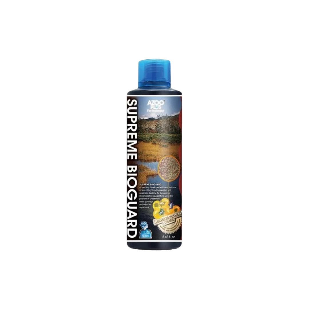 Este tratamiento biológico avanzado mantiene el agua cristalina, libre de compuestos tóxicos y con un equilibrio bacteriano ideal. Supreme Bioguard Plus introduce millones de bacterias beneficiosas que descomponen residuos orgánicos y previenen picos de amonio o nitritos. Perfecto tras limpiezas, cambios de agua o tratamientos médicos. Disponible en 250 ml y 500 ml para acuarios de cualquier tamaño.