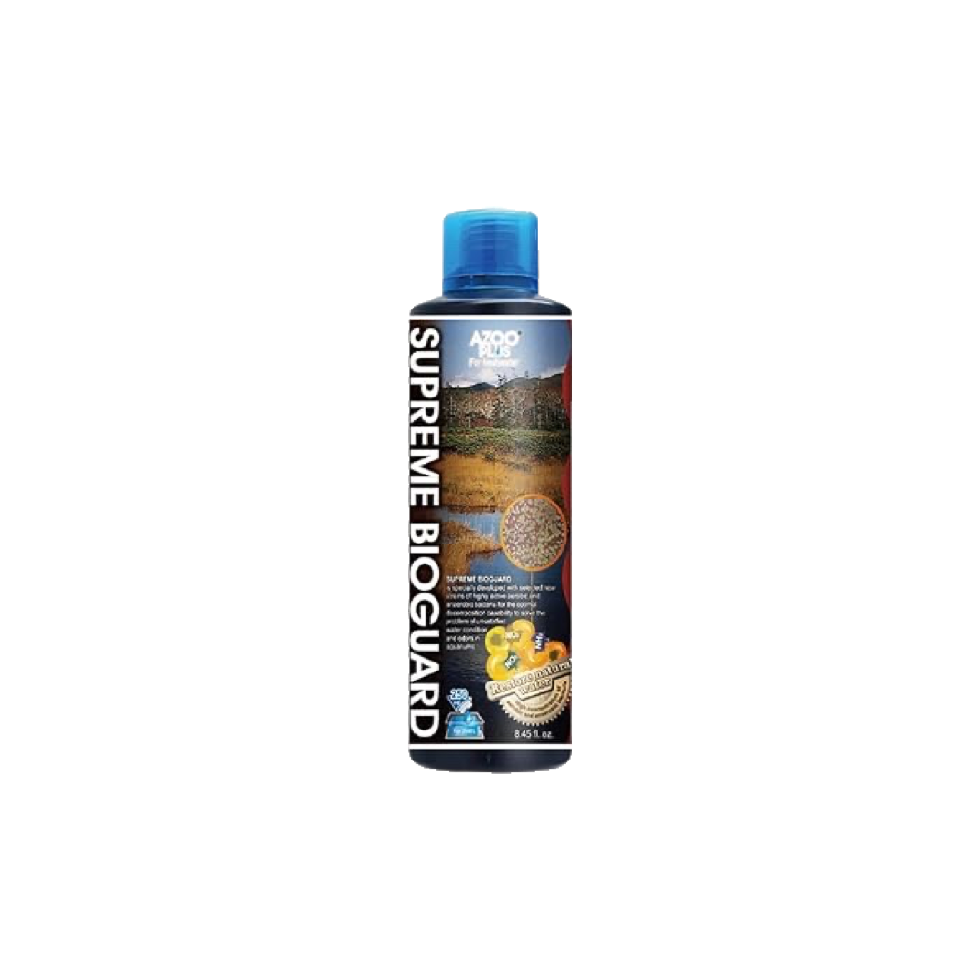 Este tratamiento biológico avanzado mantiene el agua cristalina, libre de compuestos tóxicos y con un equilibrio bacteriano ideal. Supreme Bioguard Plus introduce millones de bacterias beneficiosas que descomponen residuos orgánicos y previenen picos de amonio o nitritos. Perfecto tras limpiezas, cambios de agua o tratamientos médicos. Disponible en 250 ml y 500 ml para acuarios de cualquier tamaño.